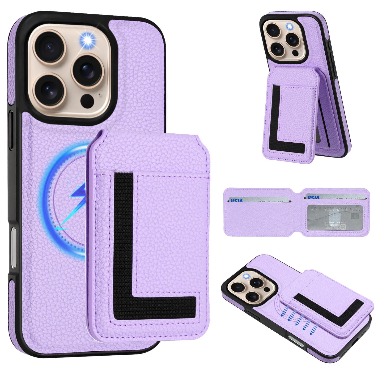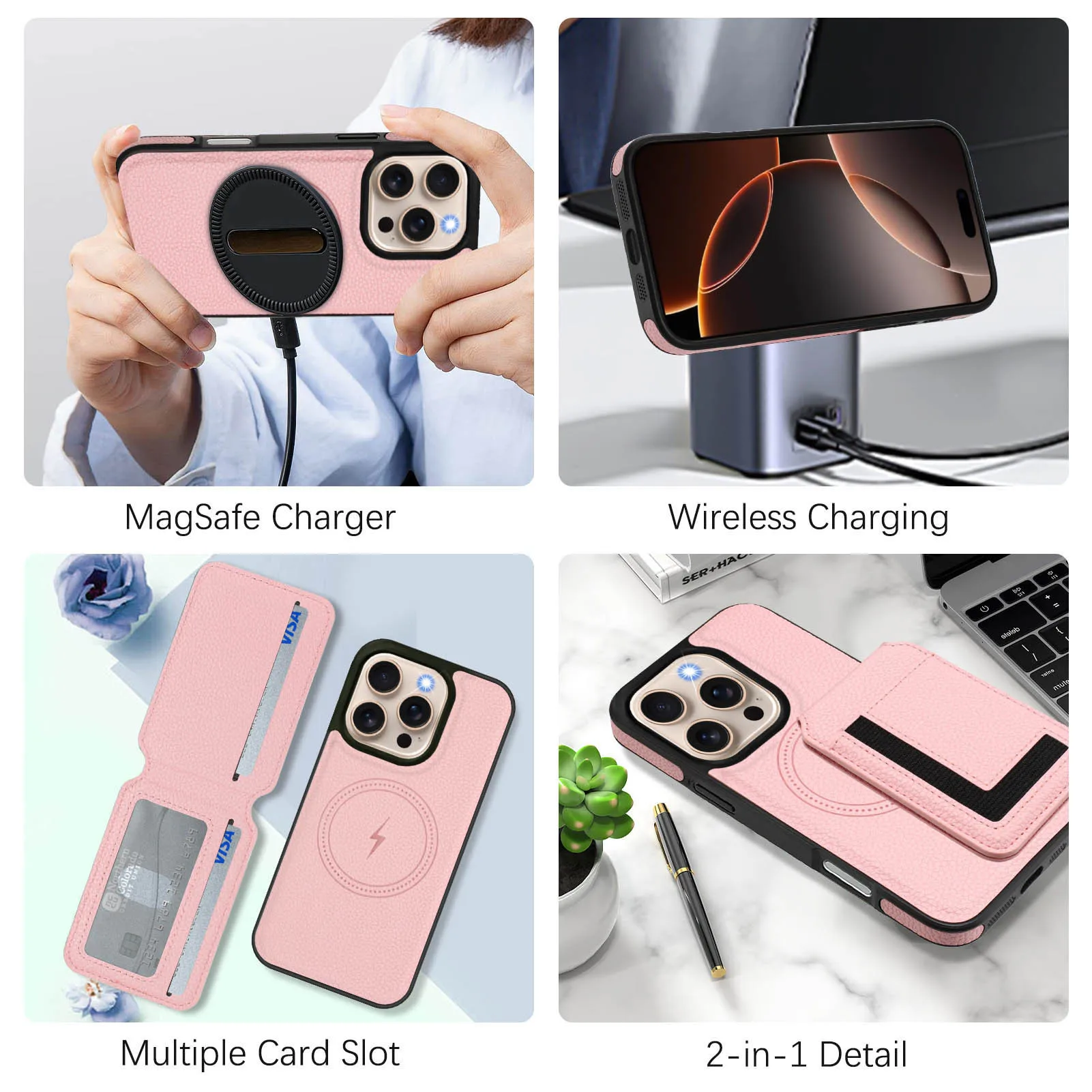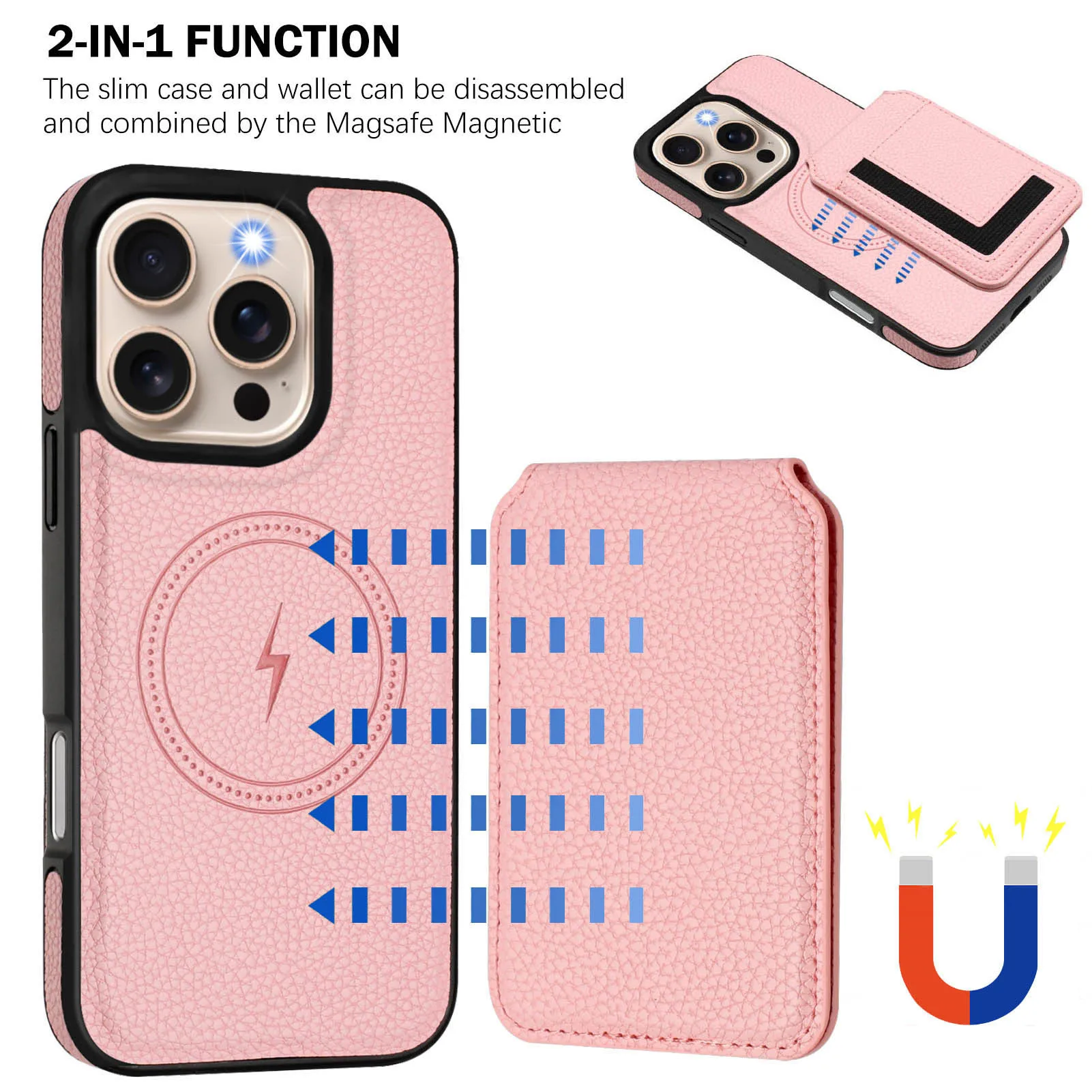 2 in 1 Detachable Card Slot Magnetic Magsafe PU Leather Phone Case for iPhone 16 15 14 13 12 11 Phone Holder Stand Cover