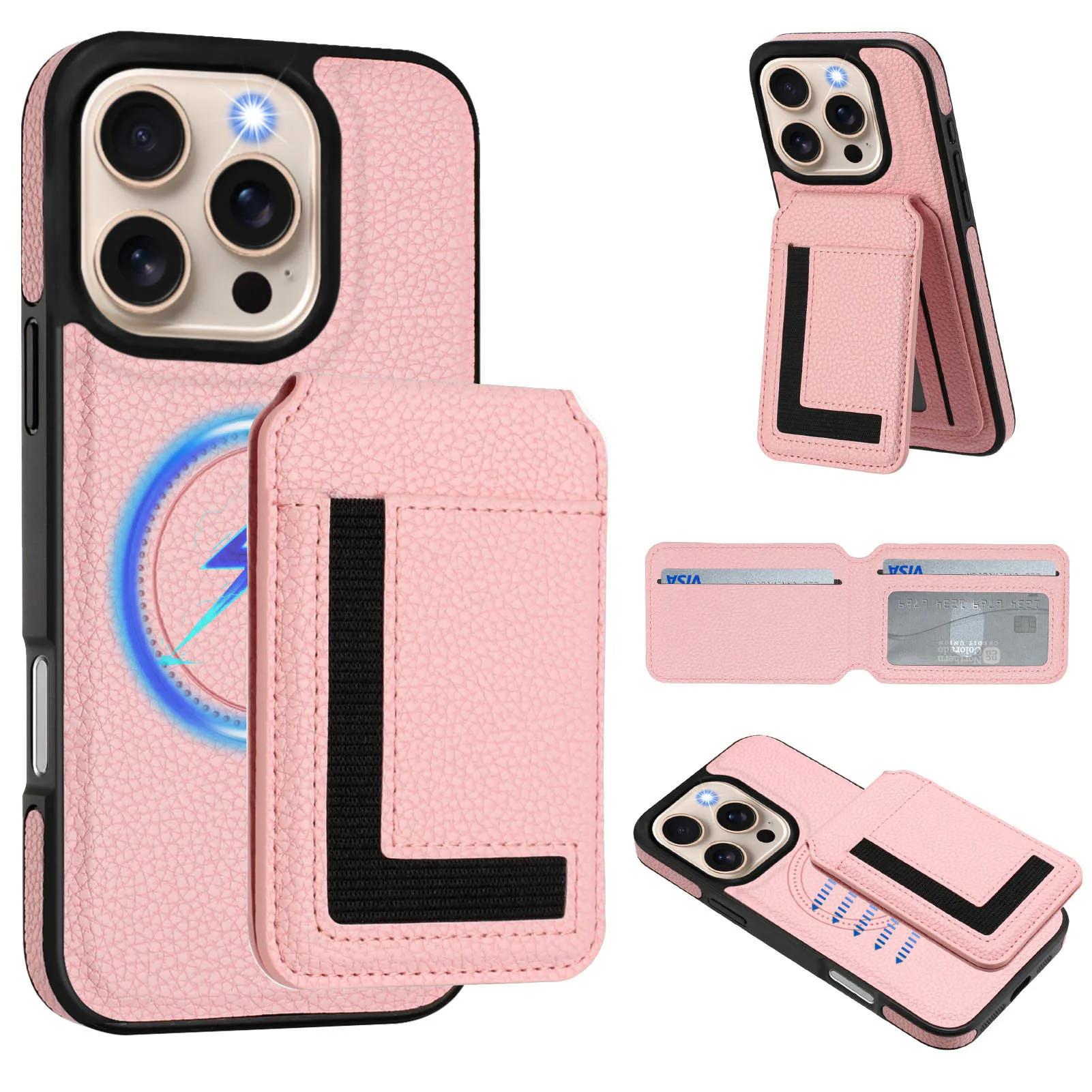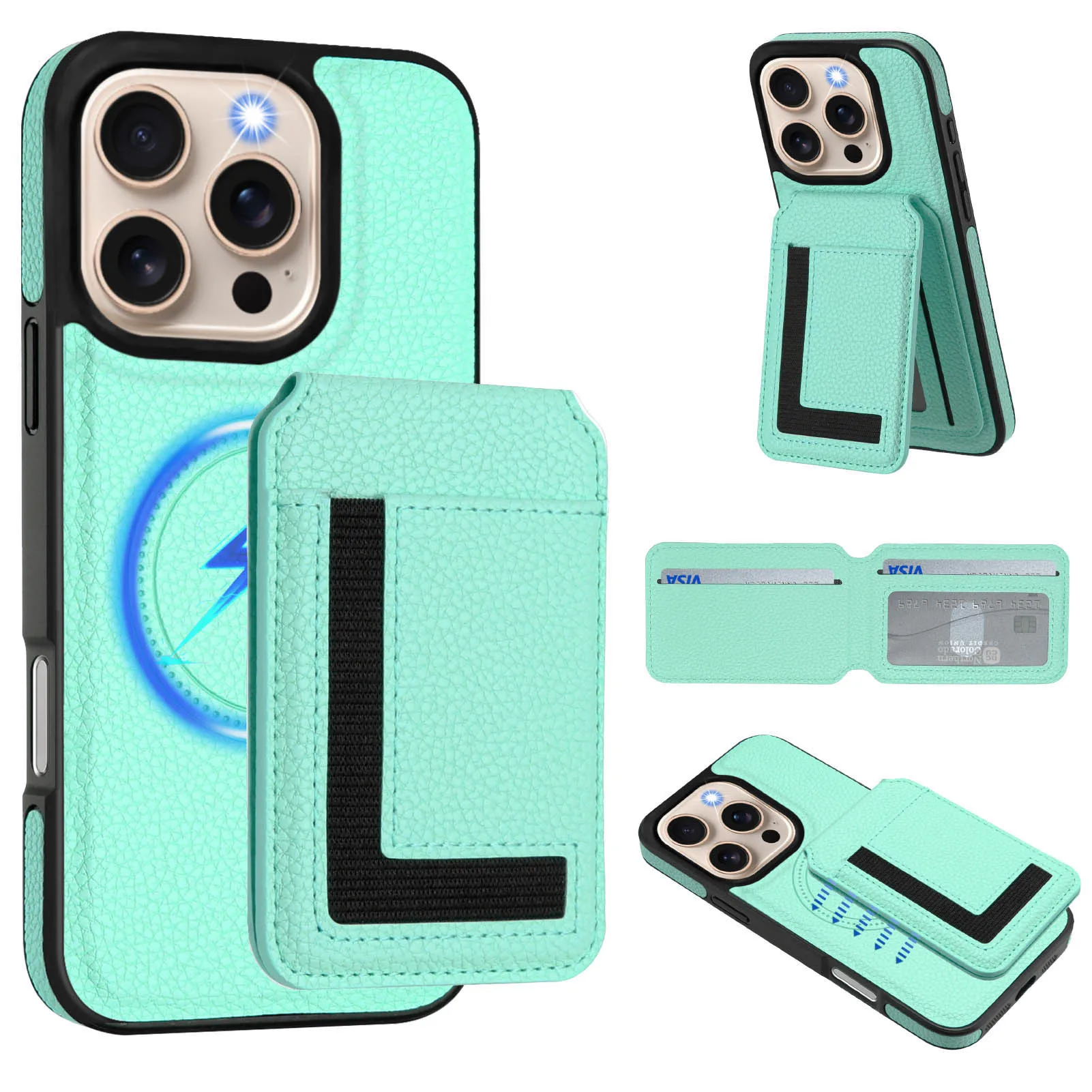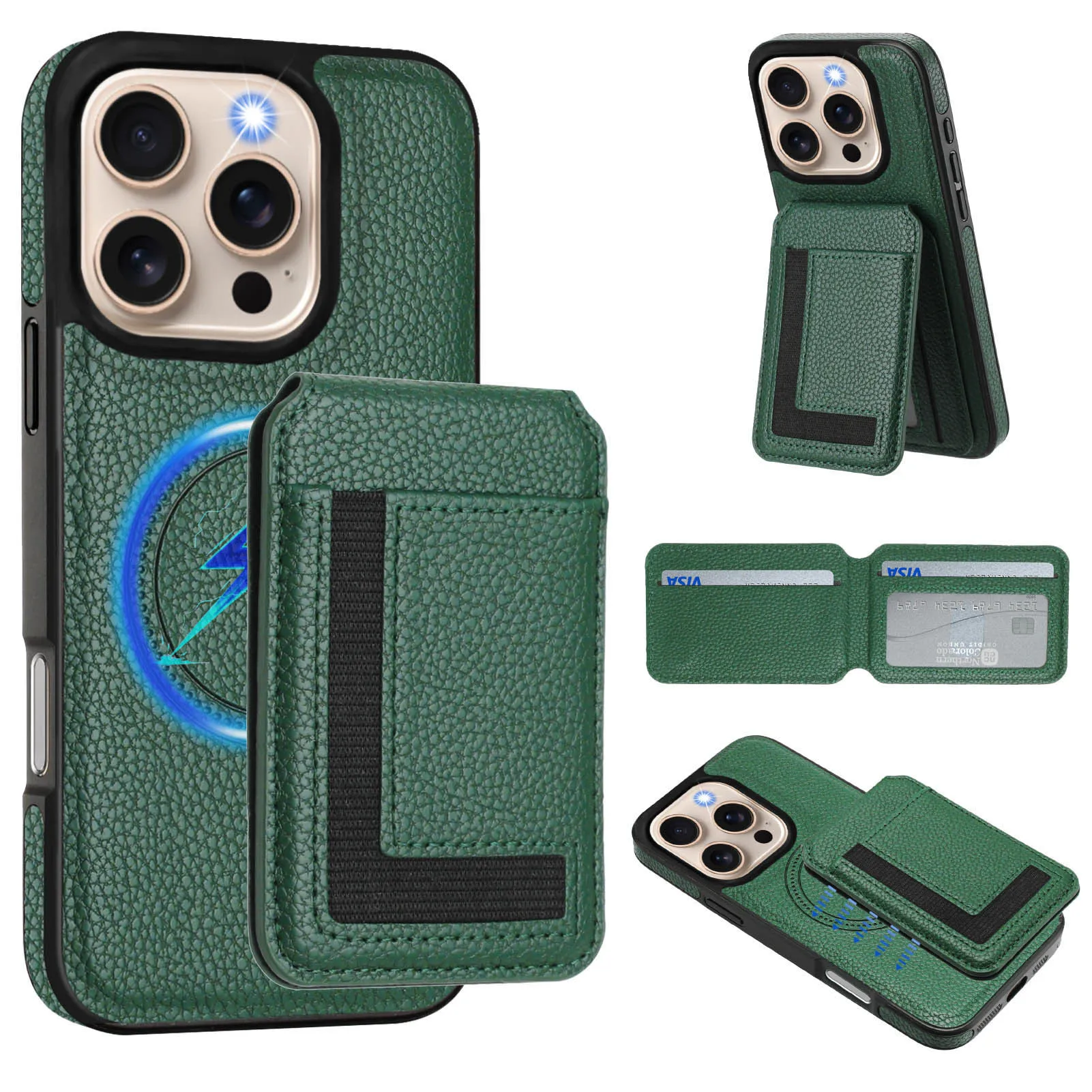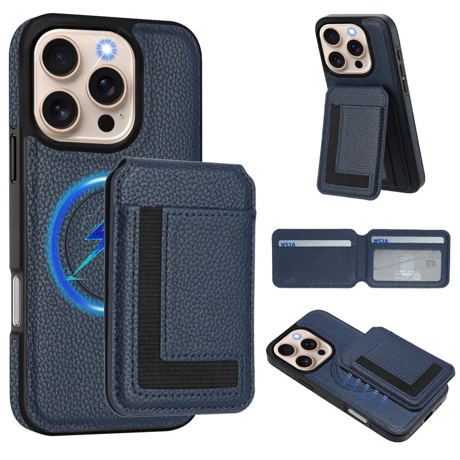 2 in 1 Detachable Card Slot Magnetic Magsafe PU Leather Phone Case for iPhone 16 15 14 13 12 11 Phone Holder Stand Cover