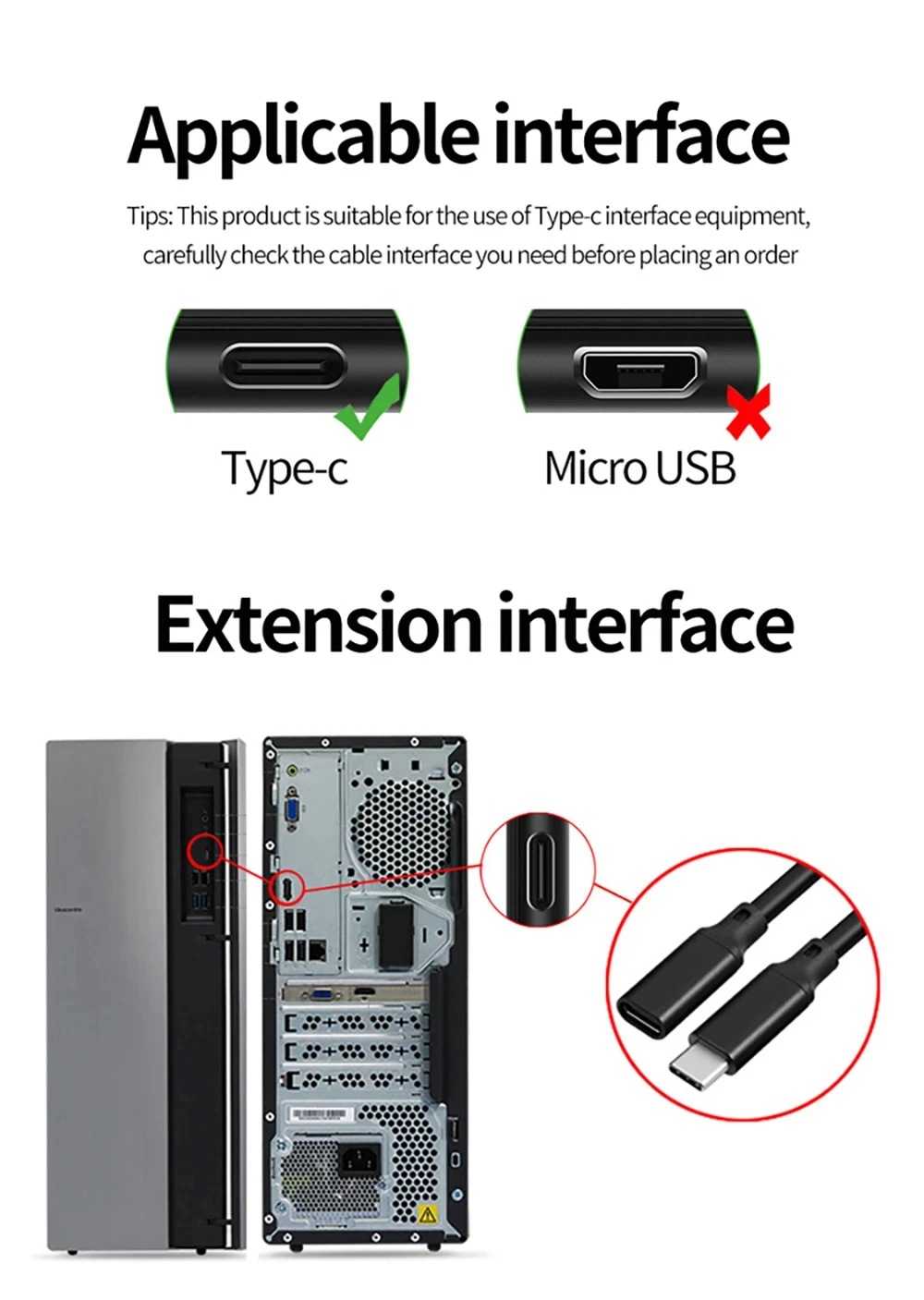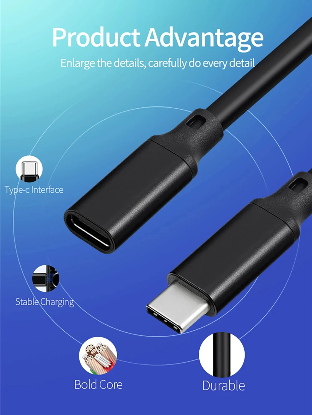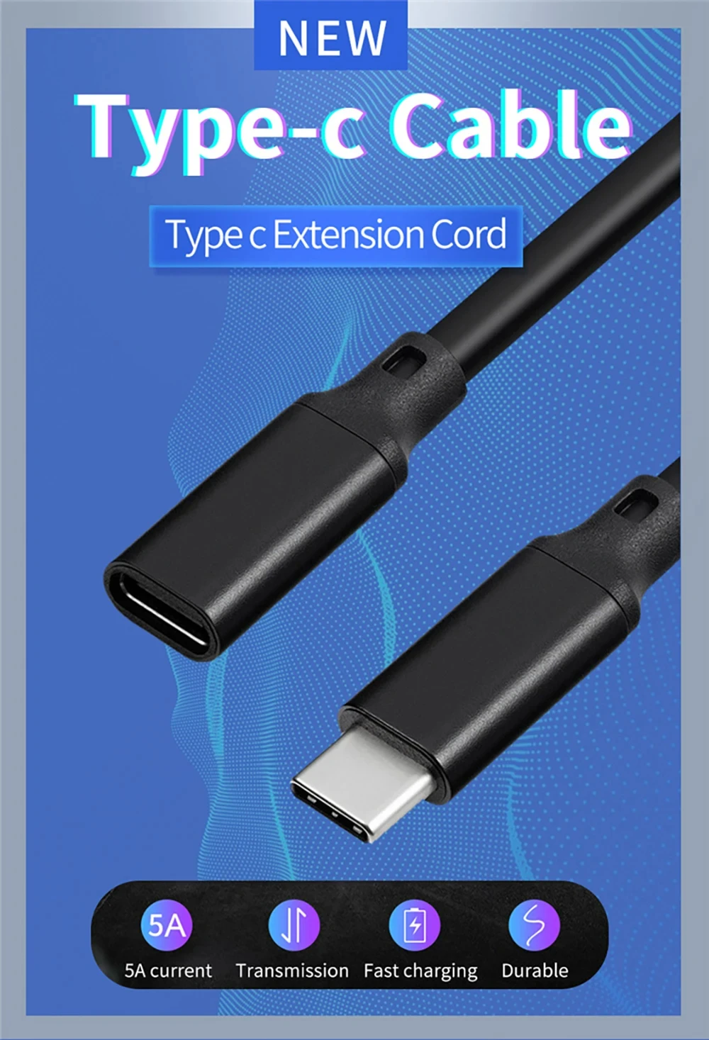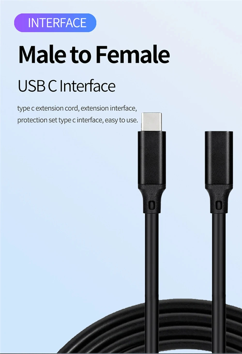 Type-C 3.1 Male To Female Extension Cord